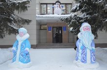 Коллектив школы искусств украсил свою территорию ледяными скульптурами Деда Мороза и Снегурочки.