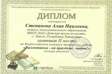 Поздравляем Степанову Алию Наилевну, педагога отделения изобразительного искусства, занявшую 2 место во Всероссийском конкурсе творческих работ «Валентинка – на праздник любви!»