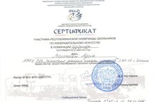 26 марта в г. Наб. Челны прошла Республиканская олимпиада школьников по изобразительному искусству. У Валиевой Адель сертификат участника в номинации "Рисунок" (педагог Дмитриев С.И.)