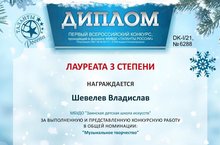 Поздравляем Шевелева В., учащегося отделения музыкального искусства, ставшего Лауреатом IⅠⅠ степени Первого Всероссийского конкурса «Таланты России» (ПДО Инюшева М.М.).