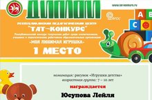 Учащаяся отделения изобразительного искусства Юсупова Лейля приняла активное участие в Республиканском конкурсе творческих работ среди воспитанников, учащихся и педагогических работников образовательных организаций «Моя любимая игрушка» и стала победителем – I место (ПДО Степанова А.Н.).