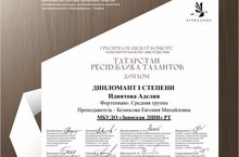 Учащаяся отделения музыкального искусства Идиятова Аделия приняла активное участие в I Республиканском конкурсе исполнительского мастерства «Татарстан Республика талантов» и стала дипломантом I степени (ПДО Безносова Е.М.). Поздравляем!!!