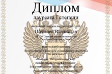 1.Инюшева М.М. – Диплом куратора, 2.Шевелев Владислав – Диплом Лауреата 1 степени.
