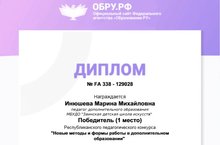 Поздравляем Инюшеву М.М., педагога отделения музыкального искусства, ставшую победителем (1 место) Республиканского педагогического конкурса «Новые методы и формы работы в дополнительном образовании» г. Казань.