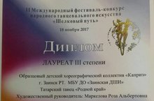 Поздравляем Образцовый детский хореографический коллектив «Каприз» (педагог Маркелова Р.А.), ставших Лауреатами 3 степени во ІІ Международном фестивале – конкурсе народного танцевального искусства «Шёлковый путь» (г. Казань).