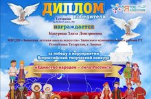 Всероссийский творческий конкурс «Единство народов – сила России» прошел с 16.10.2017г. по 30.11.2017г.. Обучающиеся педагога Васильевой В.Н. стали победителями конкурса и награждены: