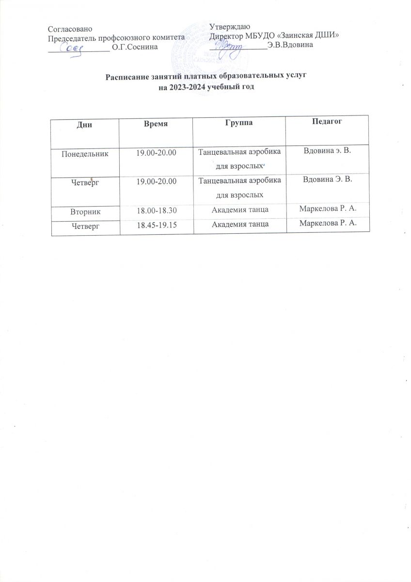 Расписание занятий платных образовательных услуг на 2023-2024 уч.год.