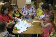 В детском саду «Рябинка» полным ходом идет подготовка к новому году. 18 декабря во второй младшей группе «Черёмушка» открылась «мастерская Деда Мороза». Родители вместе с детьми вырезали снежинки, делали фонарики и игрушки для оформления группы. Затем все вместе своими поделками украсили группу.