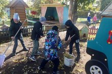 В акции «Чистый двор» приняли участие все воспитанники. Немало пришлось потрудиться, чтобы убрать листву с территории детского сада.