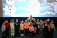 Сегодня воспитанники старшей и подготовительной групп посетили кинотеатр "Космос". Для ребят была организована игровая развлекательная программа и просмотр мультфильмов