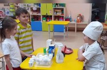 Вот и наши воспитанники с удовольствием поиграли в сюжетно-ролевую игру "Поликлиника", где доктор это человек добрый и заботливый, которому можно доверять. Укол юный врач тоже сделает недрогнувшей рукой. А заодно – усвоит, что ничего страшного в этом нет. -
