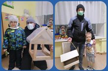 Сегодня воспитанники второй младшей группы на своём участке повесили кормушку для птиц, которую принёс Абдуллин Амир, изготовленную вместе с дедом.
