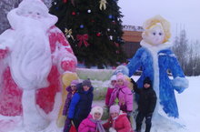Вчера ребята подготовительной группы нашего детского сада ходили на экскурсию в "Снежный городок", который расположен на центральной площади нашего города. Детей встретили Зимняя красавица, необыкновенно украшенная разными шарами и персонажи любимых, и знакомых сказок: Три медведя, Емеля, Колобок и др. Как отметили воспитанники: "Герои сказок, очень выразительно и живописно смотрятся на площади". Особо детей позабавило катание на разных горках и игра в хоккей с мячом. Соревновались в том, кто быстрее найдет выход из лабиринта. Ребята получили положительные эмоции, заряд бодрости и хорошее настроение!