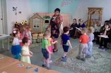 В гостях у бабушки сегодня побывали воспитанники 1 младшей группы. Развивающим, поучительным и очень интересным показала интегрированное занятие Чулакова Э. В. Используя яркий раздаточный демонстрационный материал и музыкальное сопровождение создало обстановку праздника. Малыши с удовольствием выполняли задания с прищепками "Какой хвостик у петушка", "Собери картинку". Используя звукоподражание узнавали и называли животных. Всем давно известное стихотворение "Вышла курочка гулять" выполненное под музыку, воспитывает в детях отзывчивость на пение и музыку. Малыши с удовольствием выполняли задания и упражнения.