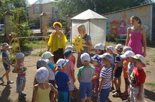 Вчера 3 июля в нашем детском саду прошло развлечение, посвященное сказкам. Приходили разные сказочные герои: Буратино, Золушка, Петушок, Мишка, Репка, Колобок, Волк, Баба-Яга и другие. Ребята вместе со сказочными героями играли в различные игры, слушали сказки, разыграли сценку по сказке "Репка". В завершении праздника все получили сладкие подарки.