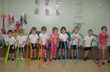 Под таким названием прошло занятие по физической культуре у ребят средней группы, где на протяжении всей организованной деятельности дети выполняли упражнения и играли с обручем. Упражнения и игры с обручем часто используются в занятиях по физической культуре, среди них: "Птицы в гнездышках", "Такси", "Птицы и клетка", "Рыбаки и рыбки". Они помогают развивать у дошкольников такие качества, как: ловкость, реакцию, гибкость, чувство ориентации в пространстве и воображение. Ребятам легко представить обруч: колесом, рулем, окном, домиком, гнездышком, лужей. На правах инструктора по физической культуре, я рекомендую родителям приобрести для дома спортивный снаряд - обруч, независимо от пола ребенка, и начать играть и заниматься вместе. Это весело, интересно и полезно. Инструктор по физической культуре Герасимова Ольга Николаевна.