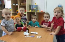 Грустно сегодня в младшей группе без любимой куклы Нины. Заболела Нина. Как же можно ей помочь. Беспокоятся малыши, предлагают полечить. Вспоминают, как мама их лечит дома. Пьют теплое молочко, ставят градусник. Помогли малыши своей любимице. Нина поблагодарила ребят за помощь и снова стала веселой. А воспитатель Ахметзянова Е.В. провела игру «Добрый Доктор» с целью расширения знаний о работе доктора и инструментах, которыми он лечит, а так же обогатить словарь понятиями: лечить, пожалеть, градусник, мазь. Воспитывая сочувствие и заботливое отношение.
