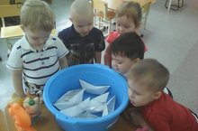 Во дворе весна, журчат ручейки, и слышатся песни птиц. Ну, какая же весна без весело журчащих ручейков и запуска корабликов? Это же весело! Кораблики можно сделать своими руками из бумаги, скорлупы, пенопласта. Так как ребята у нас в первой младшей группе еще маленькие, то это развлечение воспитатель Бормотина И. М. решила провести в группе. Она смастерили бумажные кораблики и малыши вместе с педагогом отправили их в "дальнее плавание". Ребята весело наблюдали, как кораблики плавают по воде.