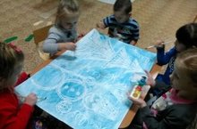Снег, деревья в инее, волшебство - это всё зимняя сказка. Для каждого человека она своя. Сегодня ребята средней группы совместно с воспитателем Ходжаевой Н. М. решили нарисовать зиму, но с капелькой волшебства. Сначала сделали невидимый рисунок воском (обычной свечёй), а затем стряхнув остатки воска с листа, равномерно раскрасили его голубой краской. Воспитанники были в восторге, когда увидели, что у них получилось. Недостающие детали было решено дорисовать синей гуашью. Эта работа стала интересным украшением группы детского сада к Новому году! Дети ещё способны верить в чудеса. Так давайте же дарить детям возможность прикоснуться к чему-то волшебному!