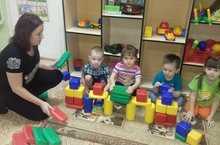 Конструирование в детском саду проводится с детьми всех возрастов, в доступной игровой форме, от простого к сложному. Сегодня воспитанники второй младшей группы построили мост необычной конструкции. Каждый внес свое предложение и представил свою модель, а затем все объединили, и получилась новая постройка. В ходе работы дети знакомятся с простейшими свойствами геометрических тел, их форм. У ребят развивается наблюдательность, креативное мышление, воображение, творческая фантазия. При этом дети не следуют предложенным схемам, они сами находят собственные, индивидуальные решения. Чтобы воспитать у каждого ребенка эстетические чувства надо просто дать ему возможность быть деятелем, что и применяет в своей работе наш педагог Бормотина И. М.
