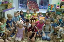 В гости со сказкой отправились сегодня воспитанники подготовительной "А" группы к младшим дошкольникам. Все мы знаем, что в гости приходят с подарками. Поэтому ребята постарались и приготовили в подарок инсценировку по сказке В. Сутеева "Под грибом". Начинающие артисты отлично подготовились и без труда сумели заинтересовать и привлечь внимание маленького зрителя. Малыши от души радовались и громко хлопали в ладоши. А юные артисты пообещали вновь придти к малышам, но уже с новой сказкой.