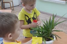 В каждой группе детского сада есть комнатные растения. Во второй младшей группе ребята еще только начинают знакомиться с правилами ухода за ними. Но видно как они желают принимать активное участие в уходе за цветами. Выстраивается очередь из помощников, каждый желает полить цветы, протереть листья от пыли, прорыхлить землю. Занимаясь трудовой деятельностью, ребята учатся не только ухаживать за растениями, но знать названия, отличать части растений (стебель, листья, цветы), замечают их отличие в величине, форме, и цвету. А наблюдения и уход за комнатными растениями дают возможность решать воспитательные и образовательные задачи.