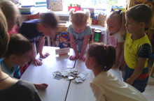 Математика считается сложным предметом и чтобы малыши ее хорошо усвоили, вся образовательная деятельность проводится в игровой форме. Вот и сегодня, чтобы закрепить понятие «один - много», воспитатель второй младшей группы Стогова Л. А. пригласила ребят в гости к кукле Даше. С восторгом ребята встретили необычную гостью, которая пришла не одна, а со своими подружками. Сколько удивления вызвало появление маленьких матрешек и понятие «много» и «один», быстро закрепили на наглядном примере. В конце занятия ребята подарили кукле Даше подарок «Букет цветов» (нарисованный нетрадиционным методом ладошками).