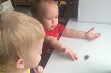Все насекомые прячутся на зиму, а нас решила посетить «Бабочка-красавица». Сегодня в гости к малышам первой младшей группы залетела бабочка. Бабочка залетела в группу через окно, когда ребята спали, поэтому для них это было чудо. Сколько восторга и радости было в глазах у самых маленьких ребят. Бабочка летала по группе, а малыши хлопали в ладошки, передавая так свой восторг. А когда бабочка села на цветок воспитатель предложила детям поиграть в игру «Посади бабочку на цветок», так ребята знакомились и закрепляли названия цветов (красный, желтый и др.)
