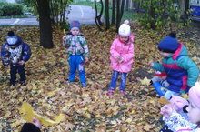 Сегодня ребята средней группы вместе с воспитателем И. А. Ковальчук гуляли в уголке леса нашего детского сада. Рассматривали яркие наряды деревьев. Слушали звуки и определяли, откуда они происходят. Поиграли в «Прятки» с обитателями уголка (медведем, зайцем и лисой). Особенно понравилось детям шуршание листвы под ногами, которая разноцветным ковром лежит под ногами. Дети большие фантазеры и придумали игру «Собери букет», в котором должны быть листья одного дерева, но с разной окраской. Все собирали букеты, и у каждого он был свой яркий, красивый и непохожий на букет соседа. Очень радостные ребята заходили в детский сад с осенними букетами-приветами. Но это уже друга история...