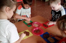 Наступила осень, а это значит пришла грибная пора. Вместе с ребятами старшей группы воспитатель Мухаметзянова Г. Г. организовала необычную аппликацию с использованием различных круп. На заранее нарисованный шаблон гриба-боровика дети осторожно укладывали крупинки гречки и пшена, стараясь не заходить за контур. Занятие прошло на одном дыхании, т.к. оно было необычным и интересным. В ходе работы дети вспомнили названия других грибов съедобных и несъедобных. А еще все дружно отгадывали загадки про грибы.