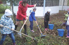 В республике стартовал экологический двухмесячник. Не остался в стороне и наш детский сад. Сегодня у нас прошел трудовой десант под названием "Листья падают, шуршат". Поэтому мы вместе с нашими воспитанниками взяли в руки грабли, метлы и дружно начали очищать от опавшей листвы дорожки и участки. Ребята отметили, как шуршит листва. "Вот поэтому так и называется наш трудовой десант?", не замедлили спросить ребята. После работы обратили внимание на чистую территорию, и гордость в глазах ребят, что каждый принял участие в работе.