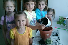Развитие познавательного интереса и любознательности через загадку о кактусе использовала педагог старшей группы Макурина Е. В. Решение подарить новый домик кактусу, который растет в уголке природы пришло после того как ребята отгадали загадку. Выбрали самый красивый цветочный горшок и украшение в виде бантика. Но прежде чем пересаживать кактус ребята познакомились с особенностями ухода за растением. Затем воспитатель вместе с детьми приготовил необходимый материал для пересадки. Елена Владиславовна осторожно вынула кактус из горшка, и ребята рассмотрели корневую систему. Соблюдая все правила посадки, кактус благополучно переселился в новый домик. А чтоб в домике было уютно, ребята украсили его красивым бантом. А еще разучили загадку и стихотворение.