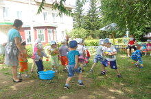 Лето - время спортивных прогулок и подвижных игр. В субботу 18-го июня инструктор по физической культуре Герасимова О.Н. провела мастер-класс под названием «Лето к нам пришло! Стало весело и тепло!». Участниками мероприятия стали дети, родители и воспитатели детского сада. Педагог рассказала о пользе оздоровительного бега, организовала несколько игр с бегом. Научила регулировать скакалку по росту ребенка, показала подводящие упражнения для обучения прыжкам на скакалке. Дети потренировались в прыжках, а мамы и воспитатели показали свое мастерство в прыжках через скакалку. Так же инструктор показала упражнения с воланом, ракеткой, обучающие игре в бадминтон, после этого взрослые и дети поиграли в парах. Завершился мастер-класс общей игрой с мячом - «Выбивалы»,знакомой детям и родителям. Данные виды спорта педагог выбрала не случайно - они не требуют больших материальных затрат, полезны для здоровья и физической подготовленности детей, способствуют поднятию настроения и мотивации к занятиям физическими упражнениями на воздухе. Играйте с удовольствием!!!