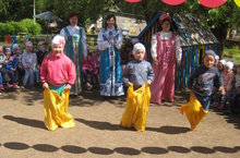 Самый любимый, самый весёлый, самый торжественный народный праздник Сабантуй. Он проводится после окончания весенних полевых работ. На этом празднике люди соревнуются в силе, ловкости, выносливости. И в нашем детском саду мы собрались 9 июня, чтобы вместе провести этот весёлый праздник. Играли в игры, соревновались в любимых забавах: бег в мешках, бег с ложками, перетягивание каната. В конце праздника в борьбе на поясах абсолютным Батыром стал Габидуллин Р. Ребята получили большой заряд бодрости и позитива на весь день.