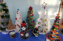 В средней группе организовали выставку на тему «Пора новогодних ёлок». Родители совместно с детьми изготовили елочки из любого, понравившегося им материала. Мы были приятно удивлены фантазии наших родителей! Они сделали ёлочки из бумаги, мишуры, ниток, елочных игрушек. Эти работы отправлены на городской конкурс в ДДТ. Ждём результатов!