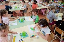 Сегодня воспитанники старшей группы на занятии по рисованию ознакомились с изделиями городецких мастеров, рассматривали альбомы по декоративно-прикладному искусству. Затем учились рисовать элементы росписи, цветочный орнамент. Упражнялись в составлении оттенков цвета. Работы наших «мастеров» получились красочные, аккуратные и красивые.