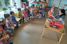Воспитатель Агзамова Г.Х. с детьми первой младшей группы провела беседу на тему «Профессия - пожарный». Рассказала детям о профессии пожарного, дала представление о специфике работы. В ходе беседы рассмотрели пожарную машину: как она выглядит, из чего она состоит, какие принадлежности и оборудования есть в машине для пожарных. Дети узнали много интересного о профессии пожарного.