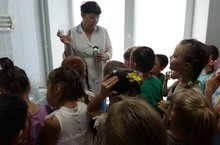 17 октября дети подготовительной группы посетили кабинет старшей медицинской сестры Надежды Васильевны. Она ознакомила детей с медицинским кабинетом, с его местоположением в здании детского сада, с оборудованием и медицинскими инструментами, их назначением. Также ознакомила с профессией медицинской сестры детского сада, объяснила, что нужно уважать труд медицинского работника. Дети с удовольствием слушали Надежду Васильевну и с большим интересом задавали ей вопросы.