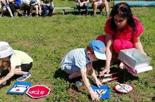 2 нче июль көнне тәрбияче Хабибуллина Ф.Ю., юл куркынычсызлыгы кагыйдәләрен өйрәнү атналыгы кысаларында, уртанчы һәм зурлар төркеме балалары белән “Яшь җәяүле” темасына викторина үткәрде. Балалар ел буе алган юл кагыйдәләре турындагы белемнәрен уеннар аша, төрле ситуацияләр чишеп, биремнәр үтәп, , табышмакларга җавап эзләп, төпле белемгә ия булуларын исбатладылар. Шулай ук үзләре ясап килгән рәсемнәрнең эчтәлеген ачып бирделәр. Юллар имин- балалар сау булсын!