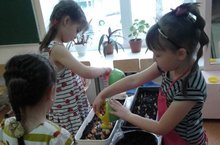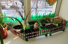 В 1 младшей группе воспитатели вместе с детьми создали огород на окне. Посадили лук, чеснок, пшено, многолетние цветы, а также ветки сирени. Цель которого была, расширить знаний детей о том, какие бывают овощные культуры, растения; об их строении; о том как можно вырастить некоторые овощные культуры дома на окне, об уходе за ними. В ходе наблюдений у детей сформировались представления о необходимости тепла, света, воды для растений.
