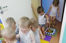 После пробуждения детскому организму нужно дать заряд энергии для последующих игр и занятий. Справиться с этой задачей помогают закаливающие процедуры после сна. В 1 младшей группе ежедневно после дневного сна проводятся закаливающие процедуры. Для этого используются массажные дорожки, подушки набитые фасолью, горохом. Дети с удовольствием шагают по ним , выполняют разные упражнения с воспитателем.