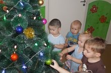 Сегодня в ясельной группе вместе с детьми украшали елочку - лесную красавицу. Все внимательно рассматривали игрушки, шарики, бусы. Воспитатель рассказала детям, что вокруг елочки водят хороводы в карнавальных костюмах.