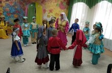 23 октября в МБДОУ д/с «Солнышко» прошло ММО для музыкальных руководителей и воспитателей по обучению родному языку детских садов города. Мероприятие на тему «Дуслык иле» подготовили и показали музыкальный руководитель Ялозюк Г.А. и воспитатель по обучению родному языку Миннебаева А.Ф. Праздник открыли дети в разных национальных костюмах. Для гостей прозвучали стихи, детьми были показаны танцы народов Поволжья, а также продемонстрирована игра на детских музыкальных инструментах «Ах, вы сени, мои сени».На мероприятие были приглашены бабушки, одетые в разные национальные костюмы, каждая из которых подготовила музыкальный номер, хороводные игры с детьми. В подарок для гостей воспитанница старшей группы Галиева Диля исполнила песню «Ак калфак». Мероприятие прошло на высоком уровне, все гости остались под глубоким впечатлением.
