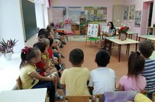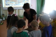 16 нчы август көнне уртанчылар һәм өлкәннәр төркемендә тәрбияче Хабибуллина Ф.Ю. “Икмәк табынга каян килә?” дигән темага әңгәмә үткәрде. Тәрбияче презентация ярдәмендә икмәк өстәлгә килгәнче нинди юллар аша үтүен тәфсилләп аңлатты. Балалар табышмаклар чиштеләр, мәкальләр белән таныштылар. Шулай ук тәрбияче икмәкнең иң зур байлык булуын ассызыклады, аның кадерен белергә кирәклеген аңлатты. Соңыннан бодай башакларын учларында уып, бөртекләр таптылар.