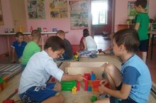 23 нче август көнне тәрбияче Мингазова Г.Н. өлкәннәр төркеме балалары белән төзүче һөнәрен үзләштерделәр. Балалар үз теләкләре белән төрле биеклектәге биналар, гаражлар төзеделәр. Балаларга бергә бердәм аралашып эшләү бик ошады. Алар киләчәктә, зур үскәч, төзүче булулары турында теләк белдерделәр.