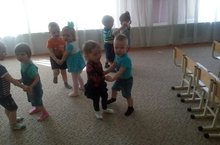 Воспитатель Григорьева В.Б. вместе с музыкальным руководителем Ялозюк Г.А. приучали детей слушать и понимать короткие, доступные по содержанию народные песенки, потешки. Давали детям слушать хорошо знакомые произведения без наглядного сопровождения. Предоставляли возможность повторять вслед за воспитателем некоторые движения со слов стихотворного текста и выполнять несложные действия, о которых говорилось в произведении.