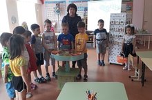 25 нче апрель көнне тәрбияче Хабибуллина Ф.Ю. уртанчылар төркеме балалары белән “Язгы урманда керпегә ярдәм итәбез” дигән темага йомгаклау шөгыле күрсәтте. Шөгыль сәяхәт формасында оештырылды. Балалар табигать, кошлар, транспорт төрләре турында белемнәрен күрсәттеләр. Куркынычсызлык, урманда һәм җәмгыятьтә үз – үзеңне дөрес тоту кагыйдәләрен искә төшерделәр. Шөгыль ахырында традицион булмаган алым белән гөмбәләр әвәләп керпене сыйладылар.