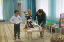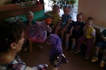 В 1 младшей группе воспитатель Демахина В.М показала детям кукольный театр “Маша и медведь”. Дети с удовольствием смотрели сказку. Малышам было очень интересно.