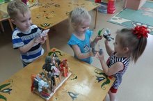 Пальчиковый театр это наиболее простой способ развития мелкой моторики, что способствует раннему развитию речи, снятию стрессов и проблем ребёнка путём проигрывания различных ситуаций. В пальчиковый театр входит набор игрушек персонажей, отдельные куколки, животные, которые одеваются на отдельный пальчик. Дети 2 младшей группы очень любят играть в пальчиковый театр и придумывать различные сказки. 21 ноября дети совместно с воспитателем Агзамовой Г.Х. придумали сказку о “Маленьком лягушонке” и разыграли ее используя пальчиковый театр. Дети играли с большим интересом.