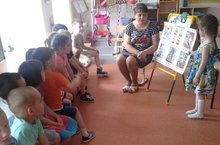 4 июля в детском саду «Солнышко» воспитатель Мингазова Г.Н. провела познавательно - игровое занятия для детей старшей и подготовительной групп «Осторожно! Чужой!». Воспитатель с детьми обсудили опасные ситуации, поведение с чужими людьми, закрепляли представления детей об опасных для жизни и здоровья предметах и ситуациях, встречающиеся в жизни. Воспитанники самостоятельно учились набирать номер по телефону и сообщать об опасности, правильно говорить свой адрес и имя. После беседы и игр дети спустились в музыкальный зал для просмотра обучающего мультфильма «Аркадий Паровозов спешит на помощь». Каждый сериал обсуждался с детьми и воспитателем. В конце занятия ещё раз вспомнили все правила безопасности.